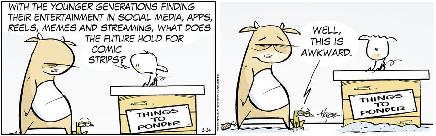 The Barn, created by Canadian cartoonist Ralph Hagen, launched nationally in October of 2008. The strip follows the daily adventures and mishaps of a curious sheep named Rory and a sarcastic bull named Stan. The storylines mimic the everyday experiences of their human captors. Set on a farm, next door to a veterinary clinic, Stan and Rory usually spend time with the owner and vet, Brenda.