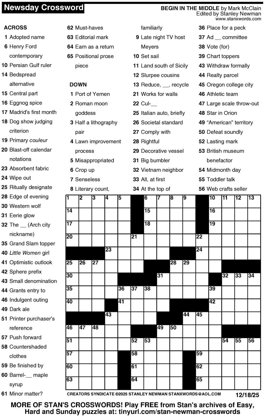 Stan Newman crafts a fresh and challenging puzzle every day of the week! Stay sharp and challenge yourself to solve each and every one.